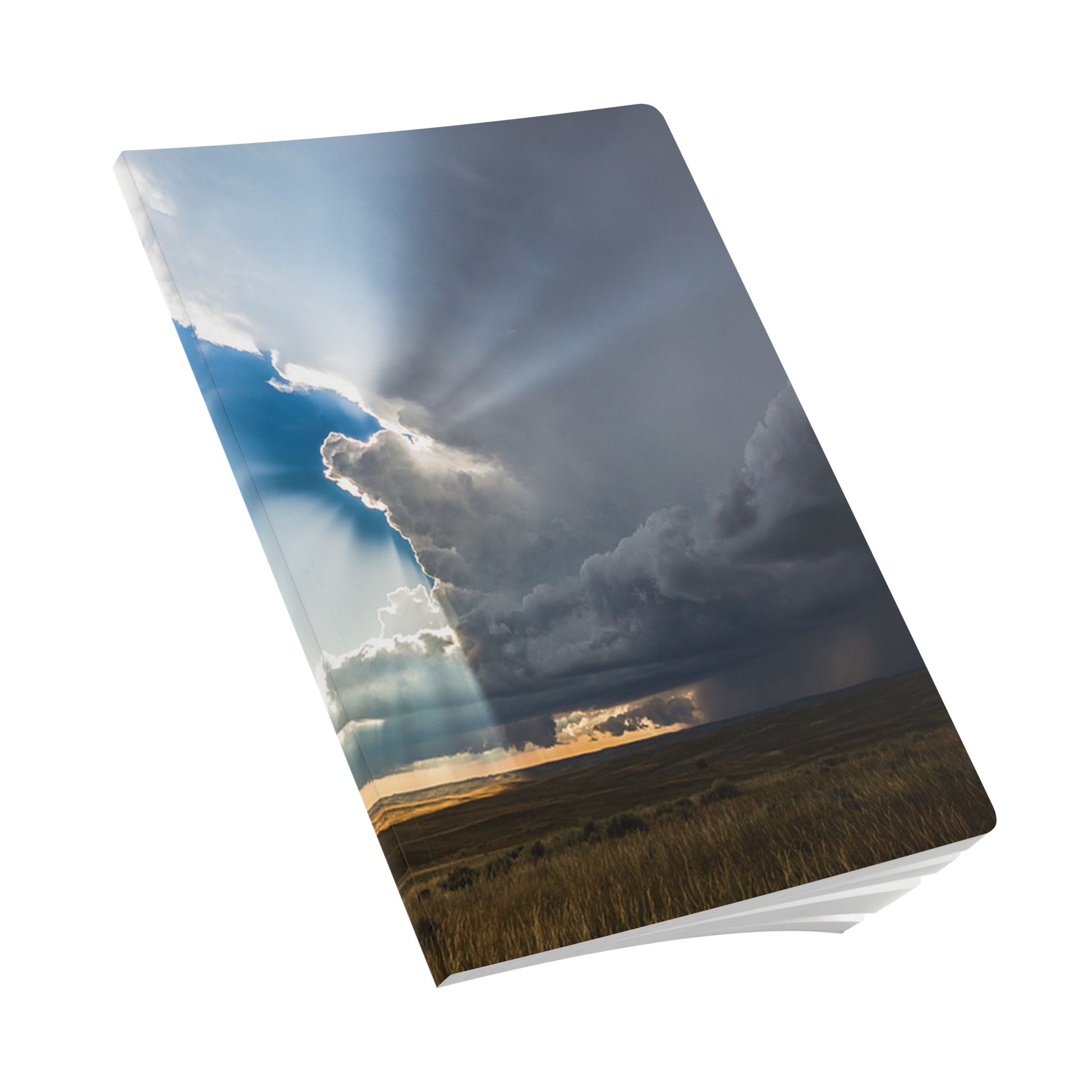 Choose 100 or 200 pages depending on how often you write; either way the 80lb (120gsm) paper takes pen, pencil, and light ink with a pleasant, substantial feel. Six inner pages can be customized for prompts, quotes, or a personal title page — assembled in the USA with vibrant printing that keeps the scene rich and true. Photo by Nicolaus Wegner.